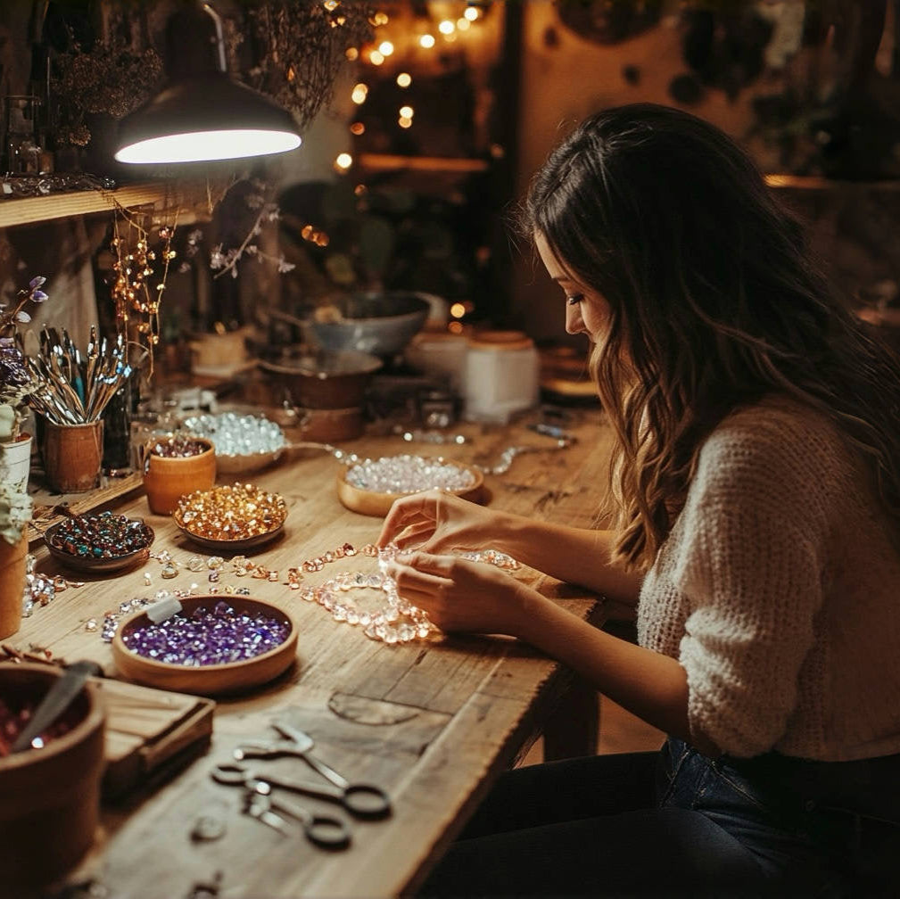 Blue Kyanite Silver Obsidian Black Rutilated Quartz Bracelet - Midnight Bloom