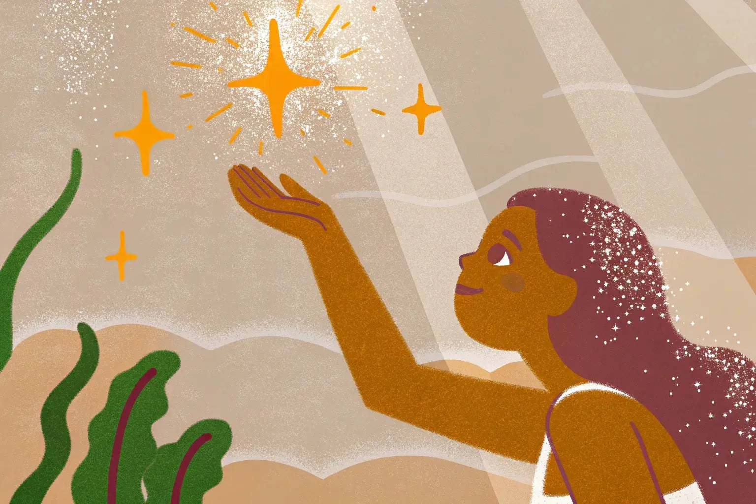 Sunlight pierced the sea, revealing countless dust-like particles floating silently — weightless, yet radiant.