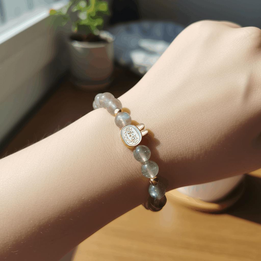 Labubu Gray Moonstone Bracelet – Moonveil Spirit